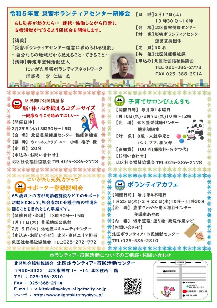 令和6年1月号では、ボランティア交流会や災害ボランティアセンター研修会など、様々な情報が盛りだくさん! 「参加してみたいけど、ひとりではちょっと不安…」、「内容についてもっと詳しく知りたい!」などありましたら、お気軽にお問い合わせください。