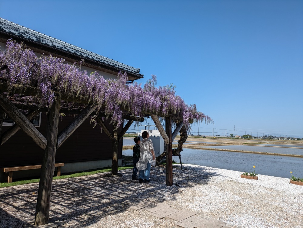当日はお天気に恵まれ、樹齢約50年のお庭の藤も見事に咲き誇り、会場にいるみなさんの目と心を喜ばせてくれました。