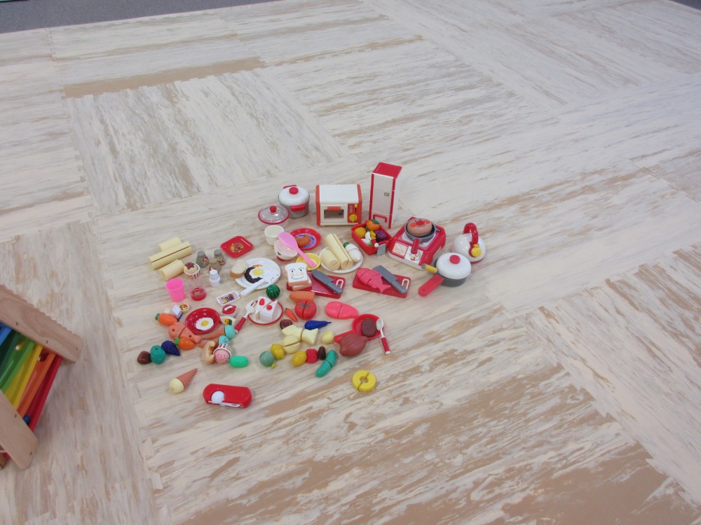 以前寄付でいただいた、車やおままごとセットがとても好評でした。子ども達も最初は静かにおもちゃで遊んでいましたが、慣れてきたらそれぞれ声を出して楽しんでいたようです。
