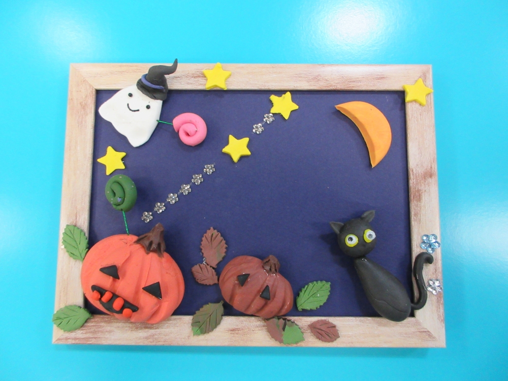 男の子はお化けに手をつけたり、オリジナルの作品が多かったです。女の子は見本通りで、自分でアレンジするという作品が多かったです。みんなそれぞれに一生懸命額縁作りをしていました。