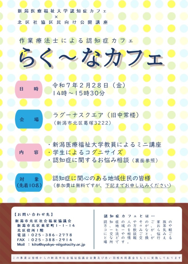 新潟医療福祉大学と北区社会福祉協議会がコラボで開催しております