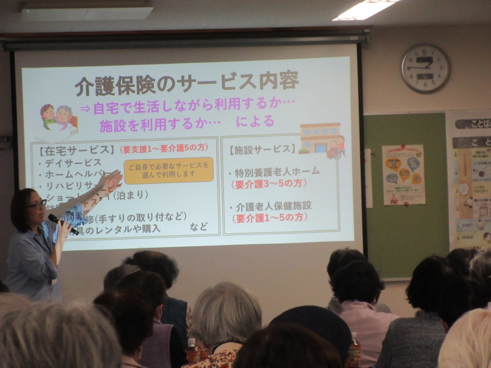 4月22日(火)令和7年度第1回目の区民向け公開講座『介護保険を知ろう!~知っていそうで知らない介護保険知って健幸💖~』を開催しました。当日は30名の予定のところ、71名の申し込みがありました。新潟市北区内の地域包括支援センターの方3名から講師としてお越しいただき、介護状態になった時の相談先、介護度の違い、利用料