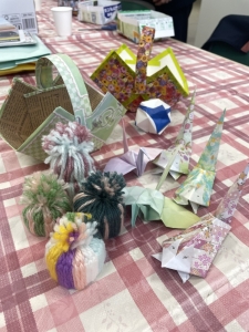 作品づくりの活動では、自宅で制作した作品を持参し、その工程を他の参加者に共有してくださる方や、今後の活動に活用できるよう牛乳パックやトイレットペーパーの芯などを持ち寄ってくださる方など、積極的な協力が見られました。作り方や使いやすさについて皆で話し合う時間は、参加者同士の交流を深める貴重な機会となり、一体感のある場が生まれました。